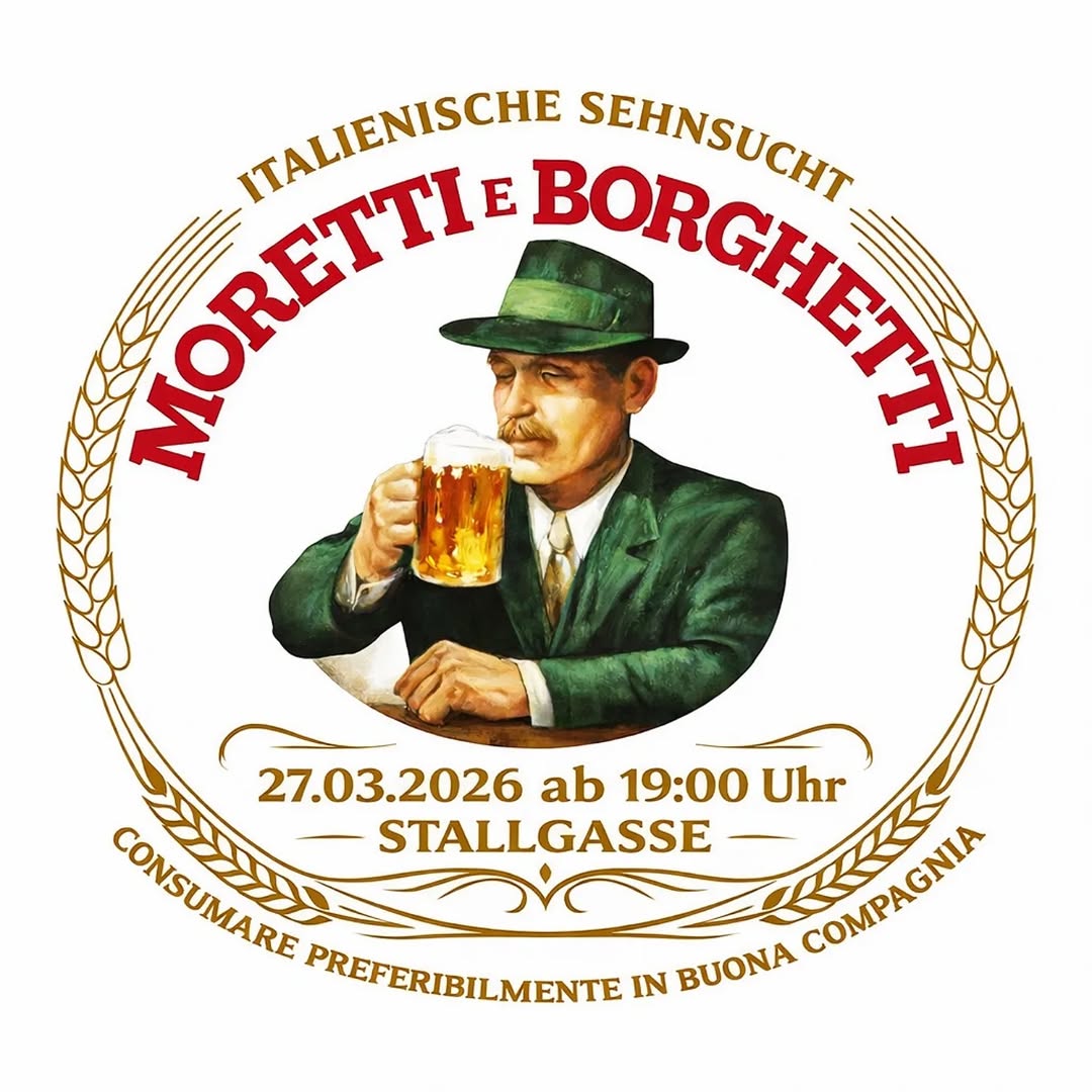 Am Freitag 27.03 gibt es feinste italienische Klassiker auf die Ohren & lecker Bierchen ins Glas. Denn wie schon Opa Moretti und Onkel Borghetti zu sagen pflegten: