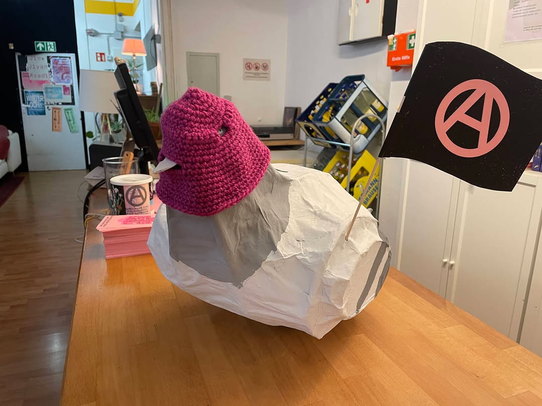 The #Pigeon of #Anarchist #Bookstore often comes #unlubed ;) Heute ist zehnjähriges Jubiläum im #BlackPigeon in der #Scharnhorststraße 50 - wir laden zu Kaffee und Kuchen und die süße Pappmàché-Taube freut sich über Spenden für die Miete - Ihr wisst schon: die Zeiten sind hart und der Gürtel hat keine Löcher mehr, und so...
