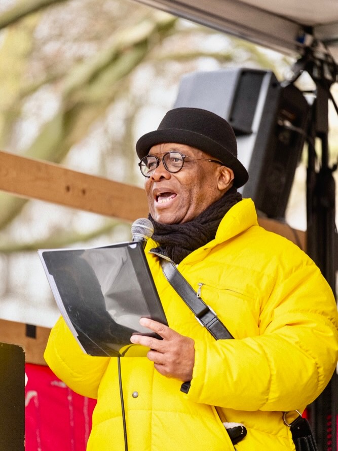 Deswegen müssen wir wiederständig bleiben und eng zusammen stehen. Für ein gerechtes Leben für alle in Würde und in Sicherheit. Denn schützen können nur wir uns selbst.