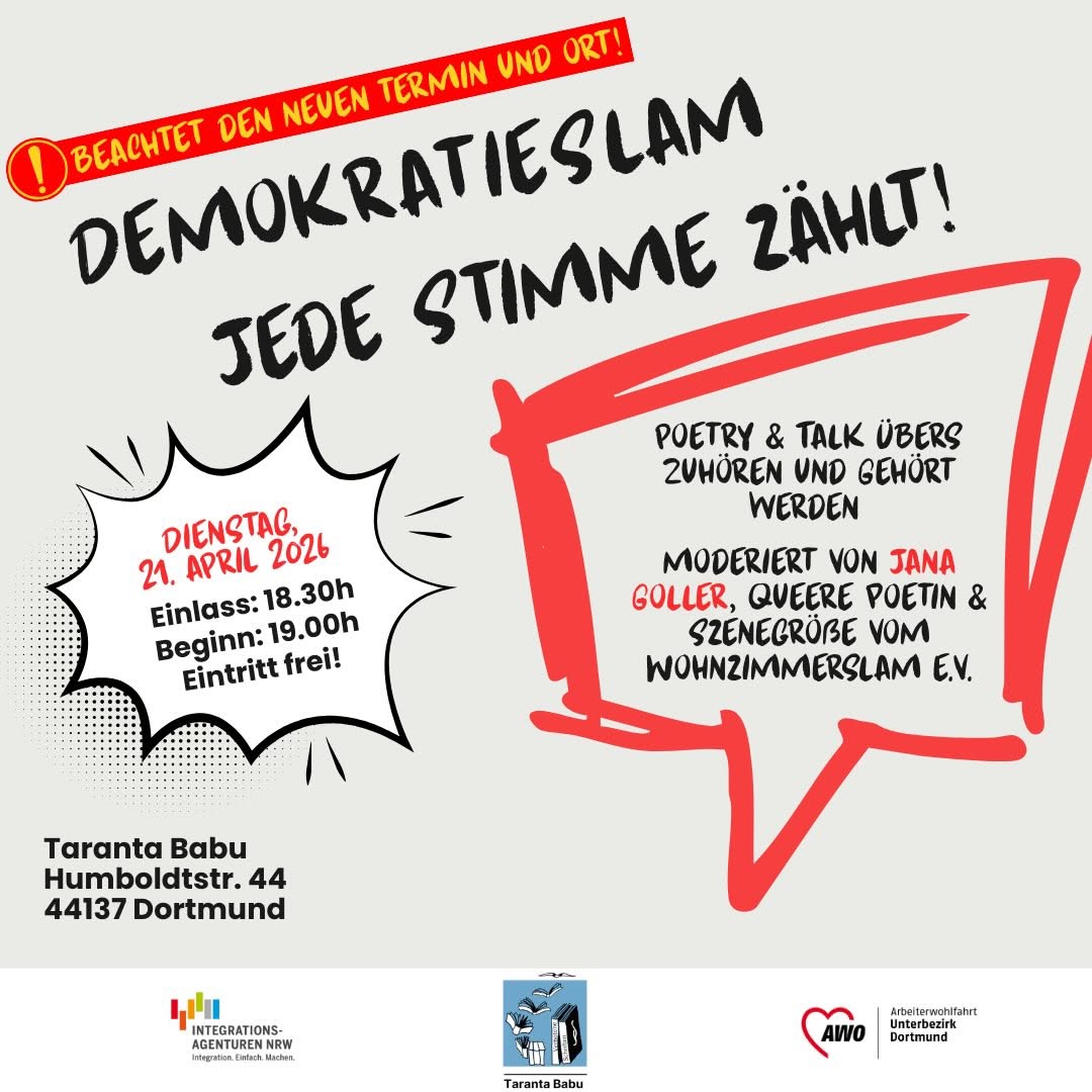 ✨Demokratieslam im @tarantababu_literaturcafe am 21. April ab 19 Uhr!✨
